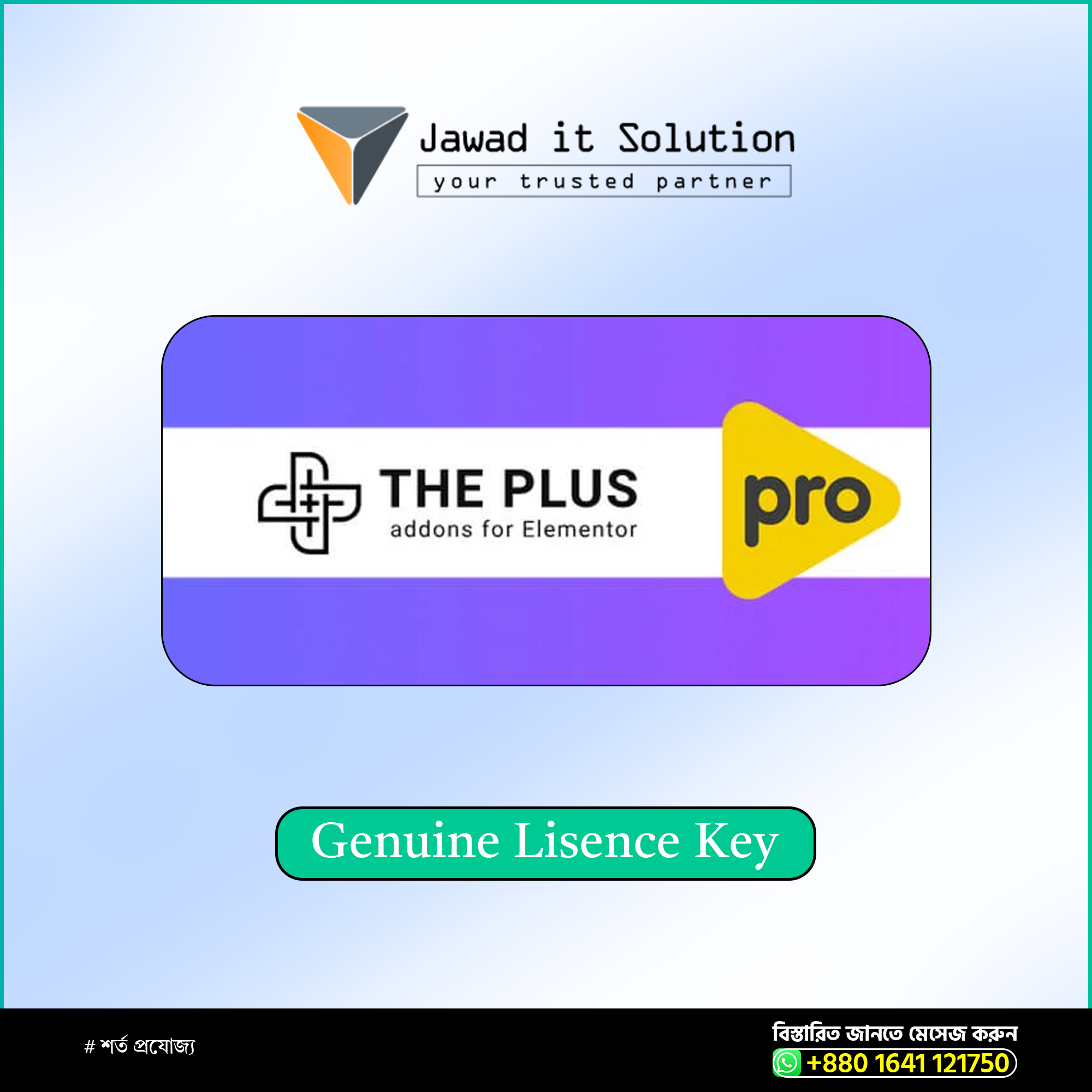 আপনি আমাদের ওয়েবসাইট এর মাধ্যমে অরিজিনাল The Plus Addons for Elementor Pro License Key Activation পাবেন। আমরা কোনো লাইসেন্স কি শেয়ার করি না। আমরা আপনার ওয়েবসাইটটিতে এটিক একটিভ করে দিবো। একটিভ করার জন্য আপনি শুধু মাত্র ওয়াডপ্রেস সাইট এর টেম্পরারি লগইন একসেস দিবেন। আমাদের The Plus Addons for Elementor Pro লাইসেন্স কি ১০০% জেনুইন।